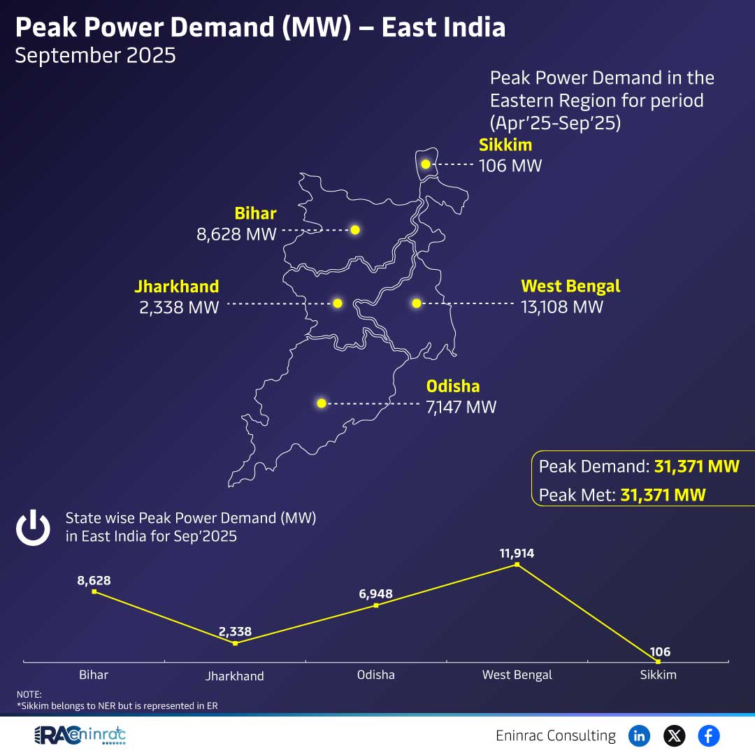 Older Newer Share Tags Eninrac ConsultingEninrac InfographicsEninrac Market InsightsOmnicorePlusPeak Power Demand (MW) - East India September 2025Peak Power Demand (MW)Peak Power Peak Power Demand Eninrac