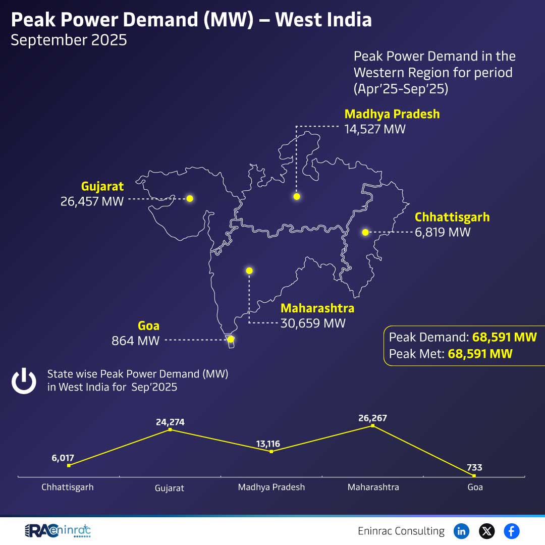Older Newer Share Tags Eninrac ConsultingEninrac InfographicsEninrac Market InsightsOmnicorePlusPeak Power Demand (MW) - West India September 2025Peak Power Demand (MW) Peak Power Demand Peak Power Peak Power Demand (MW) - West