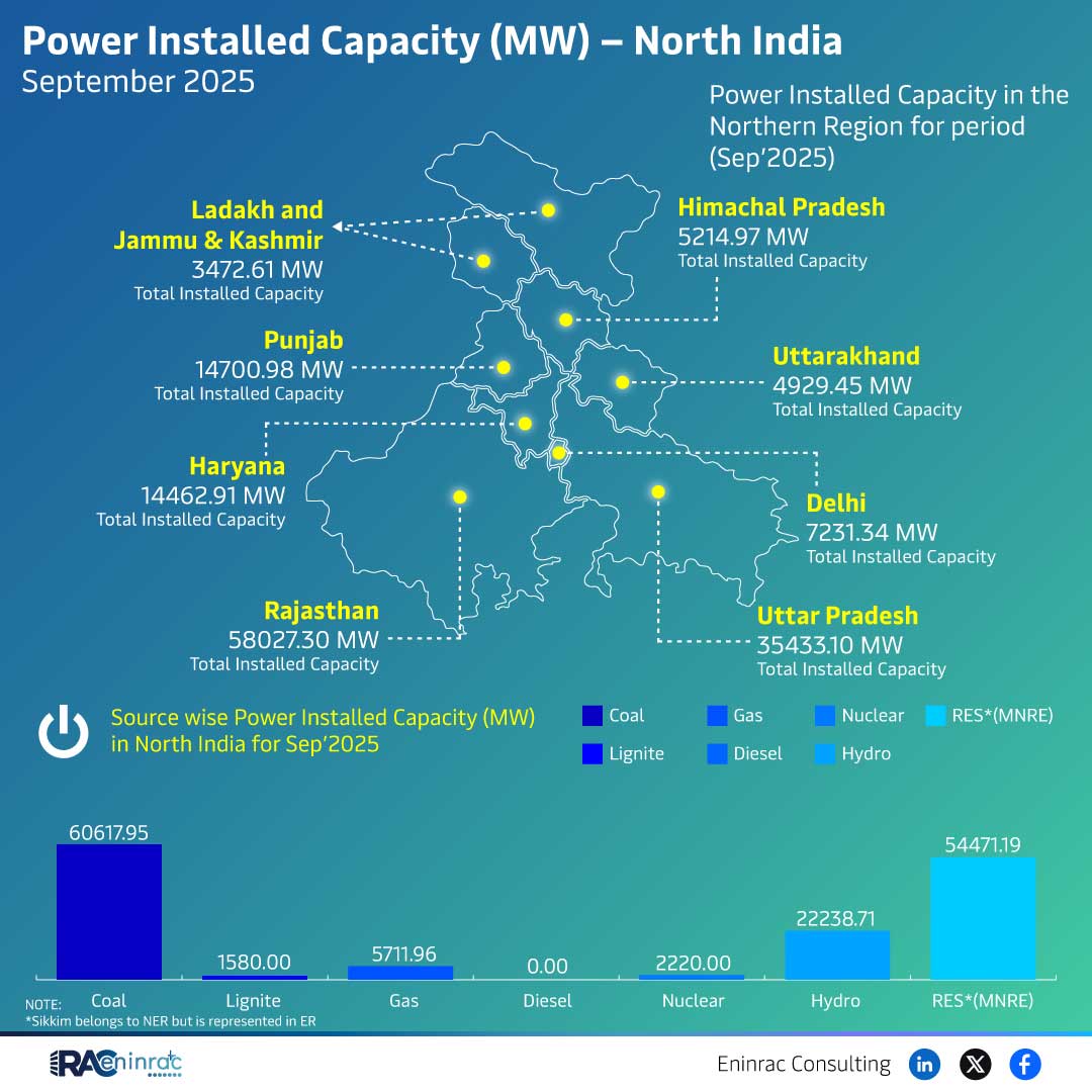 Older Newer Share Tags Eninrac ConsultingEninrac InfographicsEninrac Market InsightsOmnicorePlusPower Installed Capacity (MW) -North India September 2025Power Installed Capacity (MW)Power Installed