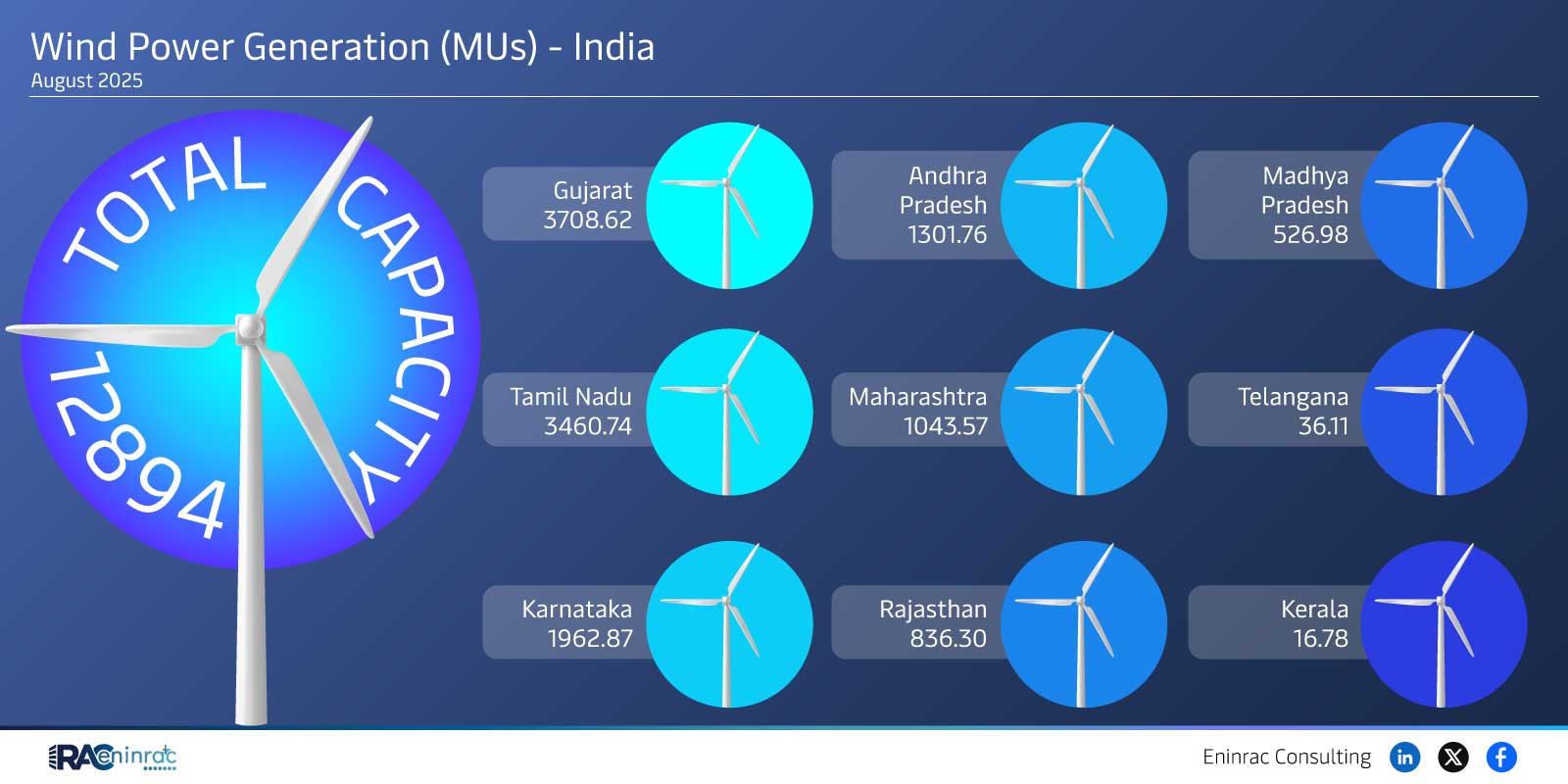 Older Newer Share Tags Eninrac ConsultingEninrac InfographicsEninrac Market InsightsOmnicorePlusWind Power Generation (MUs) - India august 2025Wind Power ProjectWind Power Generation